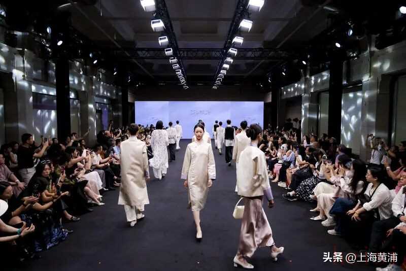這場由上海紡織時尚產(chǎn)業(yè)發(fā)展有限公司與上海市歷史博物館聯(lián)合主辦的活動,打破了傳統(tǒng)時裝秀的邊界。開幕首秀上,蘇小喬品牌以宋錦為紙,將昆曲工尺譜化作暗紋,唱詞繡入衣襟,“衣曲山河” 系列讓非遺技藝在絲織物上流轉(zhuǎn)著吳儂軟語的浪漫;中元素恰逢十周年慶典,以 “承東方?向未來” 定義中式男裝新范式,著名演員、導演、監(jiān)制吳樾身著定制服飾演繹太極意韻走秀,將東方男性的剛?cè)岵赜诓铰拈g,預示著男裝市場的文化覺醒。后續(xù)登場的衣架、莊容、熊英?蓋婭傳說則勾勒出女性新中式穿搭的多元圖景:水晶釘珠暈染宋雅風骨,蘇繡與手繪織就時光敘事,十二花神靈感化作珠繡花瓣,更有高定成衣實現(xiàn)藝術(shù)與日常的無縫銜接,連新疆艾德萊斯非遺工藝也在此煥發(fā)新生。