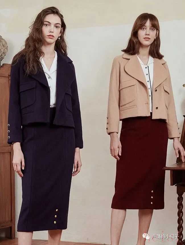稍特別一點(diǎn)的羊毛材質(zhì)直筒裙,少了一點(diǎn)包裙裙的嚴(yán)肅感,搭配古著版型的小外套,是