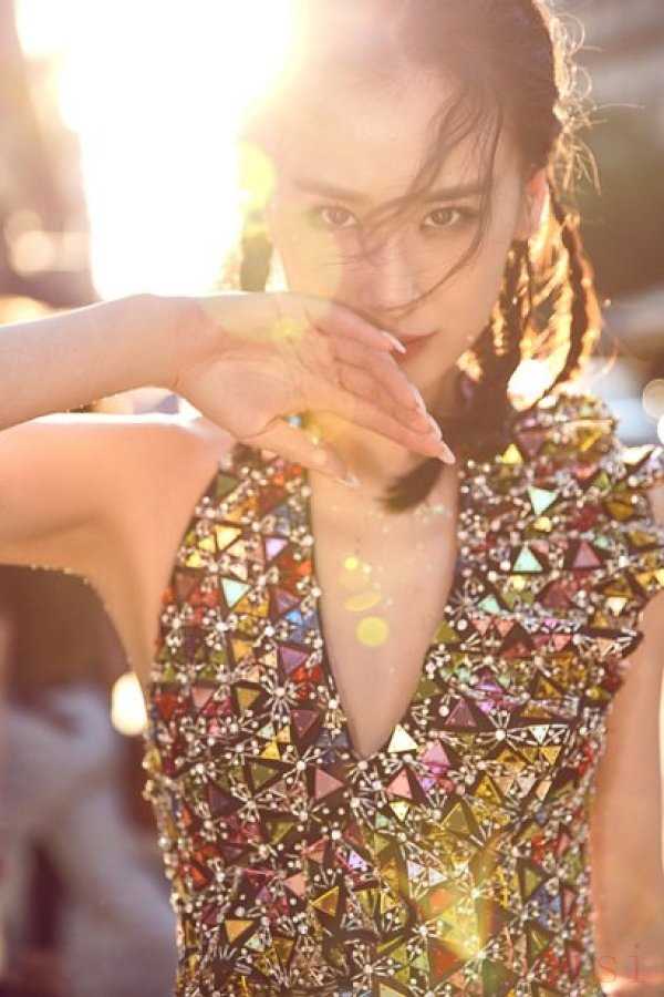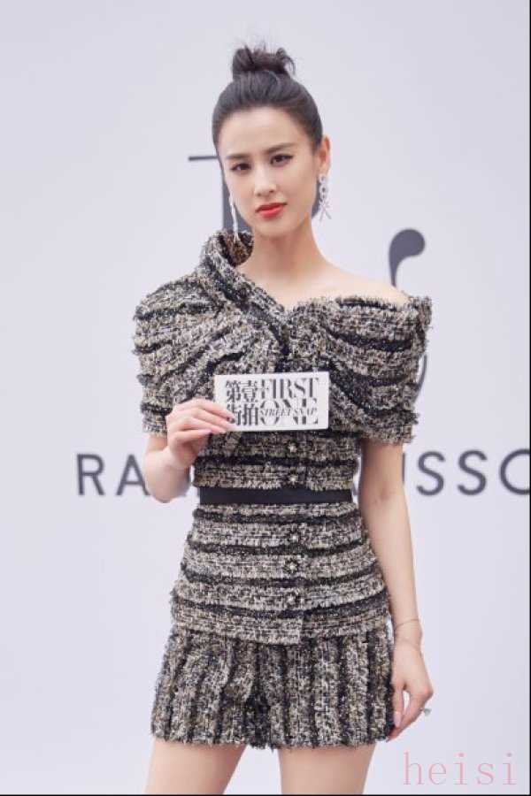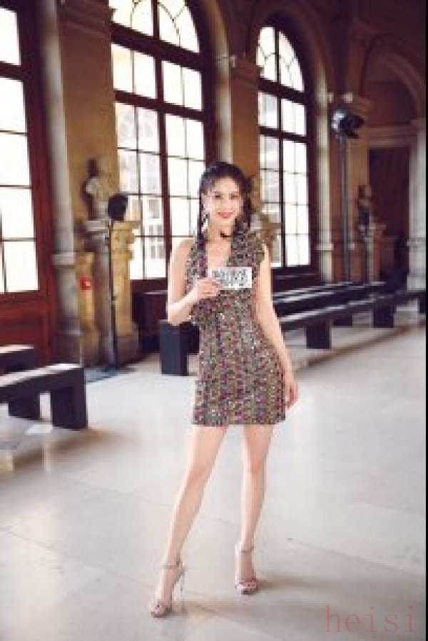 這身短裙禮服,是經(jīng)過細(xì)心打磨的七彩金屬亮片串聯(lián)在一起,全手工縫制,在陽光和燈光的照射下,猶如鉆石一般閃耀,非常凸顯黃圣依高雅的氣質(zhì)。