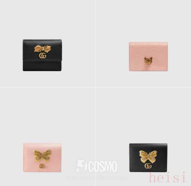 GUCCI的錢包黑金和金粉配色簡約高級,有雙G的LOGO款和帶老花暗紋的。