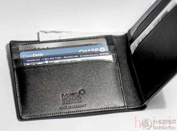 內(nèi)里的裝飾不多,萬(wàn)寶龍的全稱,標(biāo)明血統(tǒng)的“德國(guó)制造”;內(nèi)部結(jié)構(gòu)也很簡(jiǎn)單,雙層鈔票格,六個(gè)卡位,兩個(gè)可以放身份證件的格位,和一般的錢包沒(méi)有太多的區(qū)別,卡多的時(shí)候,一個(gè)卡位放兩張卡也是可以的,只要不太去擠壓就行;仔細(xì)看可以發(fā)現(xiàn),百元的人民幣其實(shí)邊緣是有一點(diǎn)露在外頭的,主要是因?yàn)槊涝热嗣駧耪?,而美?guó)和歐洲人也更習(xí)慣隨身攜帶信用卡,不會(huì)需要大額的紙幣,如果生活中有需要帶大量現(xiàn)金的還是建議到實(shí)體店體驗(yàn)后再做決定;