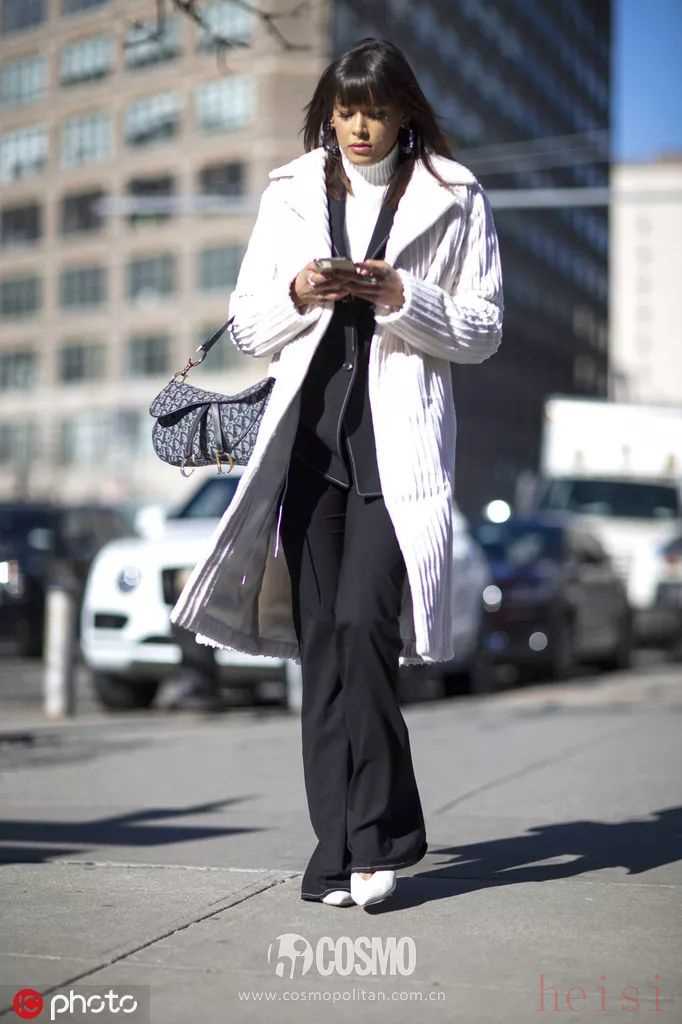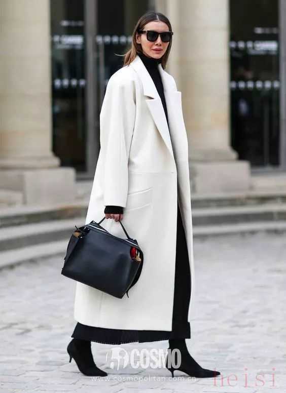 白色大衣透著高級,一件好的黑色單品傳遞的是同樣的感受,他們搭在一起就是那種不顯山不顯水卻鋪滿質(zhì)感的效果。