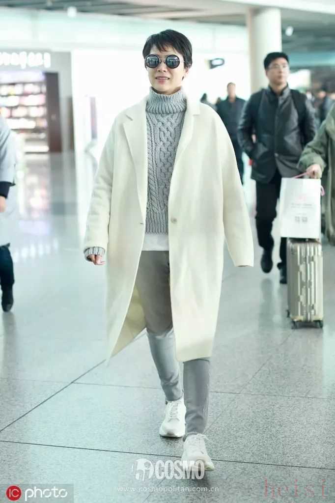 燈芯絨質(zhì)地的白大衣也很不錯,撞衫指數(shù)一顆星。