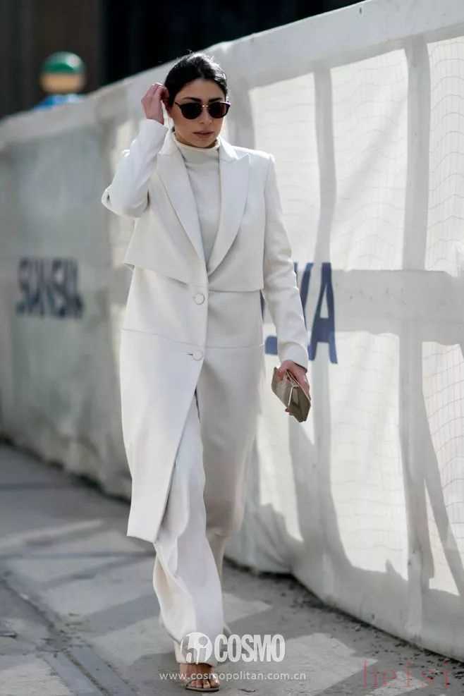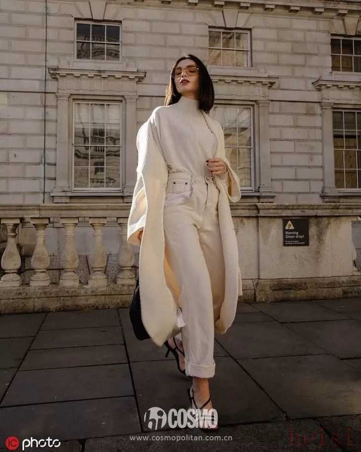 乳白+白不僅更有層次感,還多了一份溫柔的女人味,正是乳白色的加入才能美美地趕上冬天穿白色這個時髦。