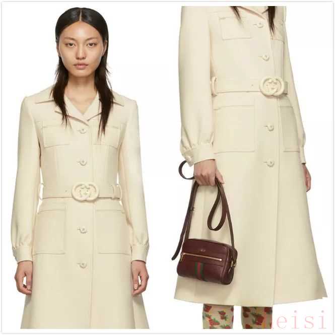 GUCCI的白色大衣穿上后就是妥妥的文藝復古咖。尤其是在小細節(jié)上都充滿了品牌辨識度,無論是馬蹄扣設計還是雙G logo都很別致。