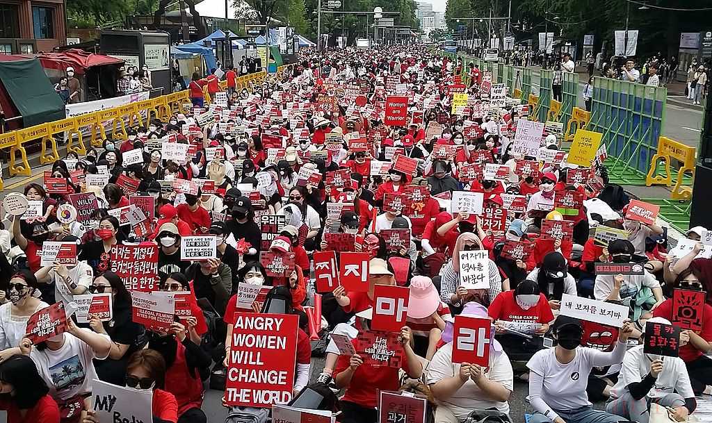 近年來,在面對社會資源壓榨與權(quán)力關(guān)系壓迫時,韓國女性的一系列社會抗?fàn)幰参巳蚰抗狻?/p>