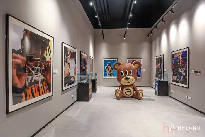 APORRO上海旗艦店以“文化即空間、體驗(yàn)即態(tài)度”為設(shè)計(jì)理念,空間設(shè)計(jì)融合工業(yè)金屬質(zhì)感與藝術(shù)構(gòu)筑。展陳區(qū)呈現(xiàn)品牌標(biāo)志性鏈飾、耳環(huán)、手鏈與定制系列,營(yíng)造如博物館般的陳列秩序;藝術(shù)裝置區(qū)以巨型熊玩偶與笑臉花裝置表達(dá)街頭文化的“玩趣奢華”;涂鴉墻與沙發(fā)區(qū)則成為APORRO精神象征的“靈魂角落”,記錄品牌從紐約街頭到全球舞臺(tái)的文化旅程。