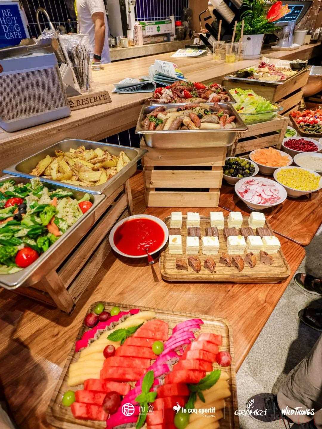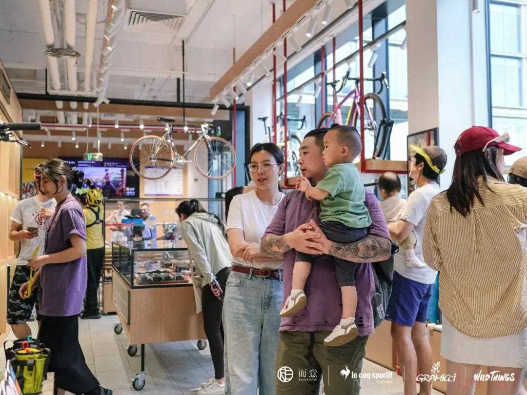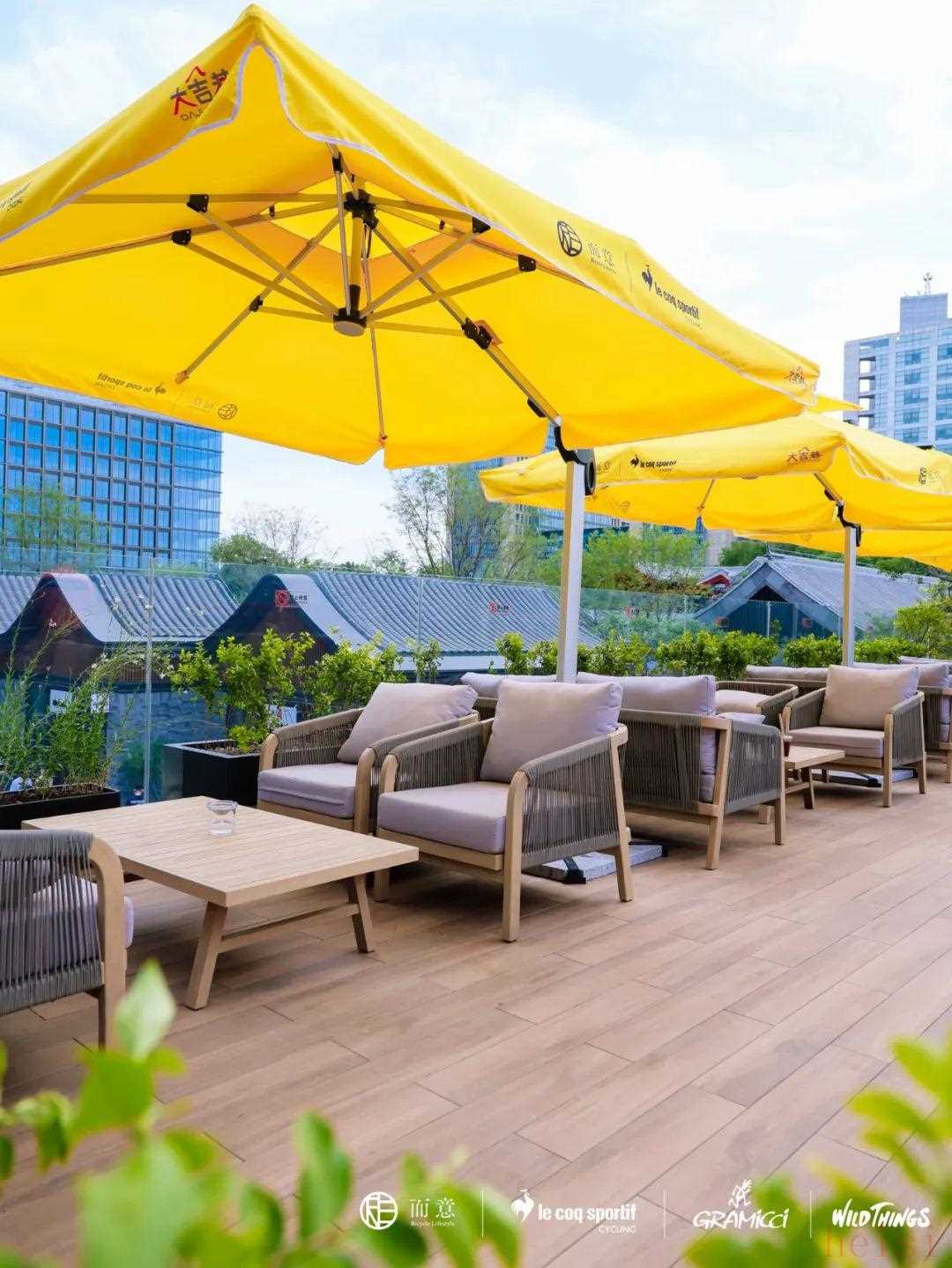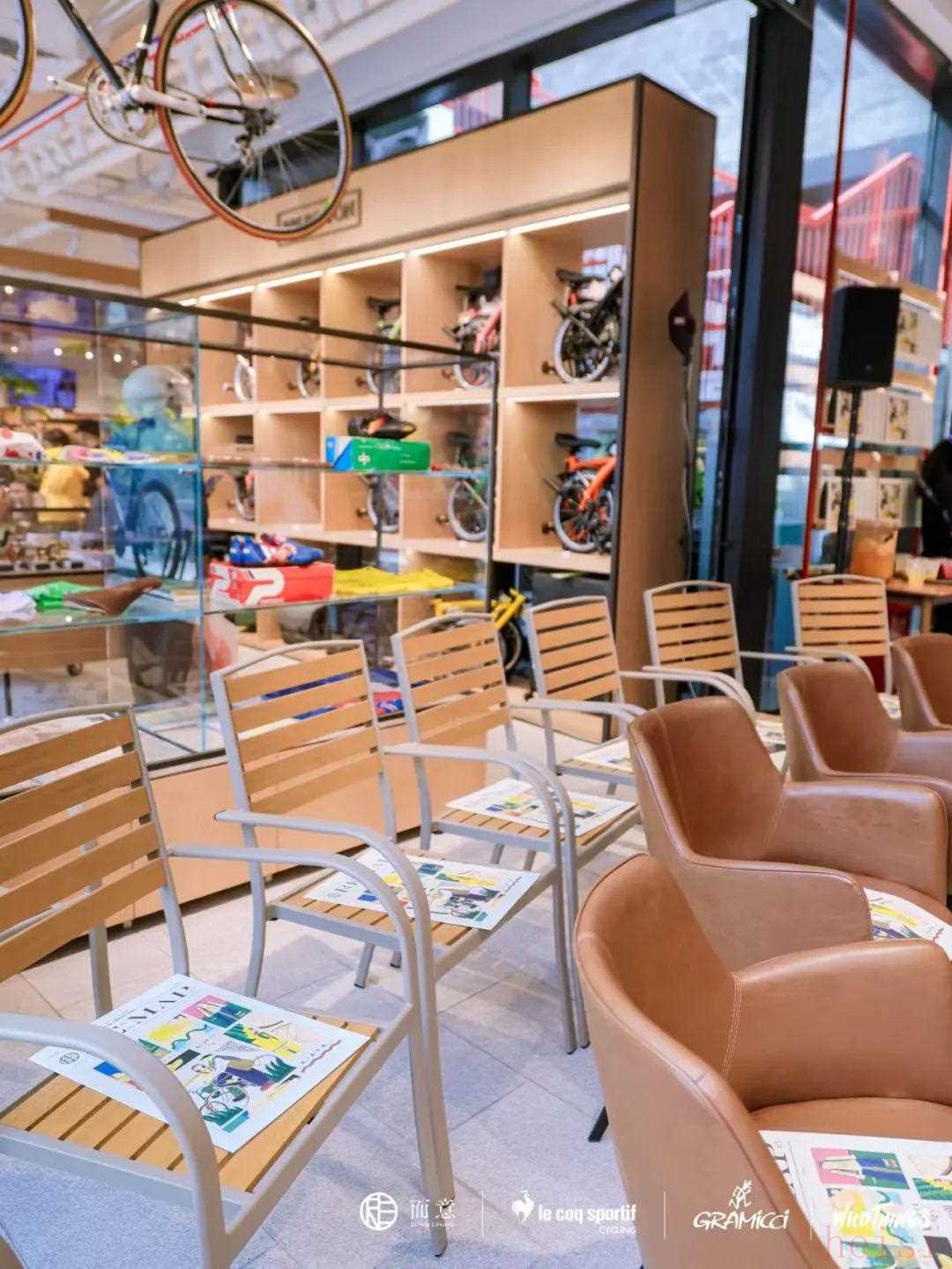 沿旋轉(zhuǎn)樓梯登上二層,特別打造的露臺(tái)及酒吧區(qū)域?yàn)轵T行愛好者呈現(xiàn)一個(gè)愜意的社交空間。開業(yè)當(dāng)天,露臺(tái)聚集了不少騎行愛好者,他們舉杯暢談,分享騎行趣事,背景音樂與歡笑聲交織,營(yíng)造出濃厚的社群氛圍。據(jù)悉,這里不僅提供精選法國(guó)酒類,更將在7月環(huán)法自行車賽期間舉辦觀賽活動(dòng),讓消費(fèi)者沉浸式感受賽事氛圍。