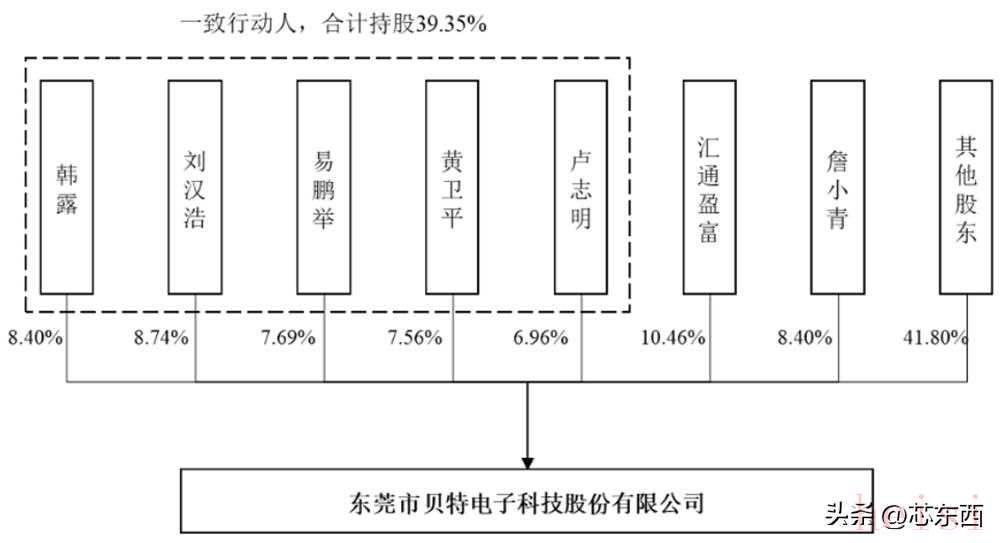 截至本公告日,貝特電子無控股股東,股東韓露、劉漢浩、易鵬舉、黃衛(wèi)平及盧志明簽署了《一致行動協(xié)議》,合計持有貝特電子39.35%股份,為貝特電子實際控制人。