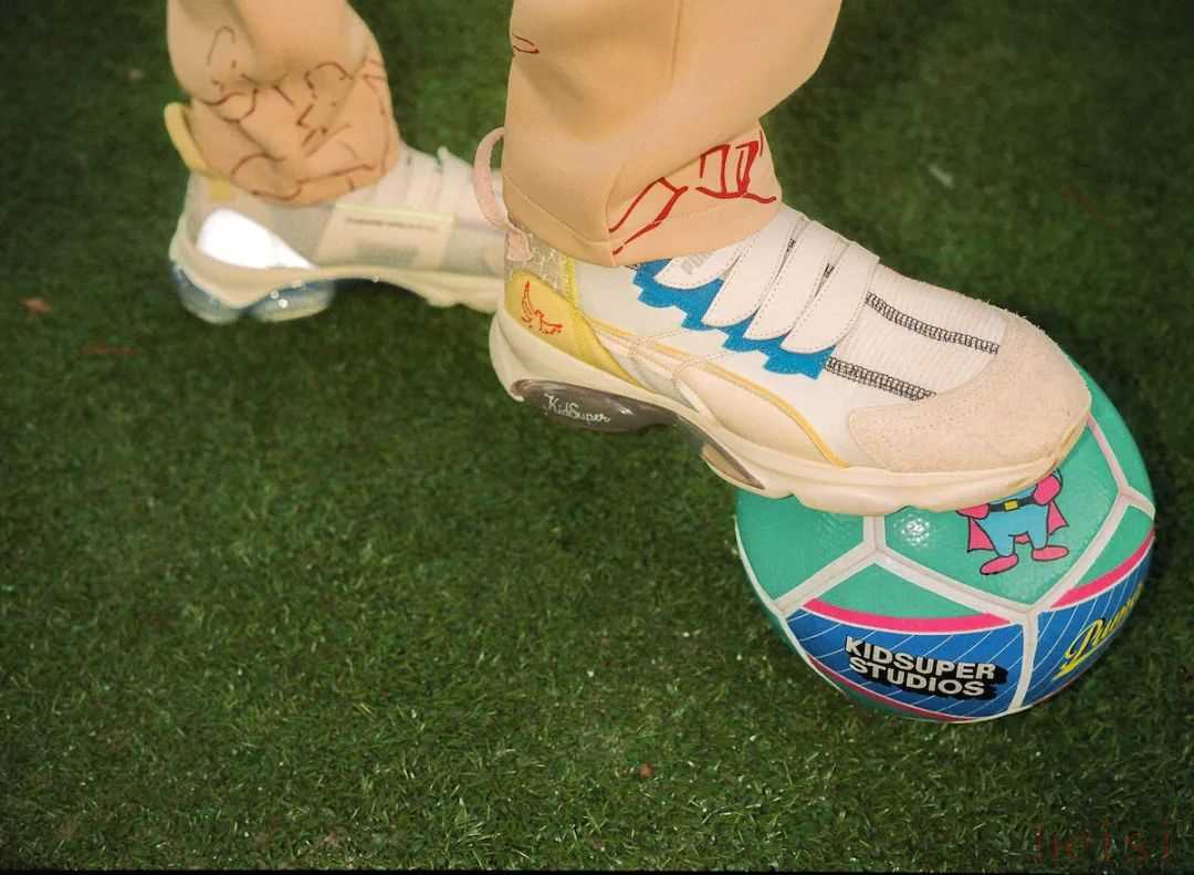 Puma 與 Colm Dillane 主理的 Kidsuper 聯(lián)名系列,其中 Cell Dome 鞋款造型極為前衛(wèi),除襪套設(shè)計(jì)外,鞋面上還有多個(gè)復(fù)古印花及涂鴉圖案。