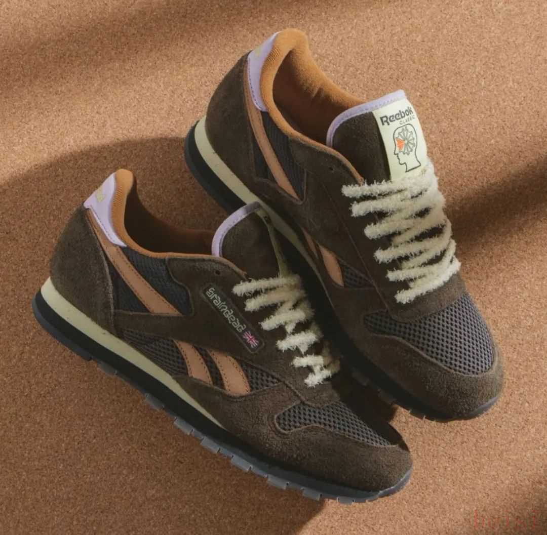 鞋側(cè)和后跟 Reebok Logo 被更改為 Braindead 品牌字樣,鞋舌亦具有 Braindead 的 Logo。泥土色調(diào)頗具戶外氣息,而具有「模糊視覺效果」的鞋帶亦是特別設(shè)計(jì)。