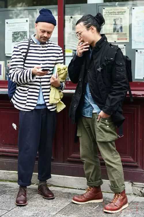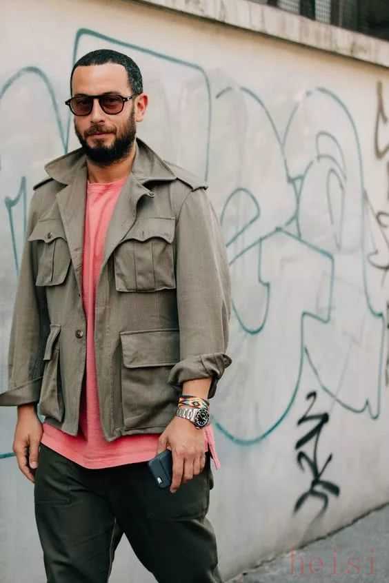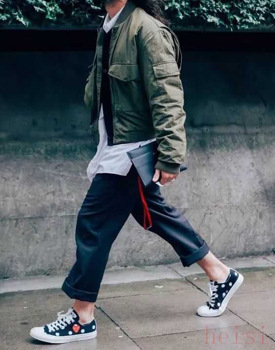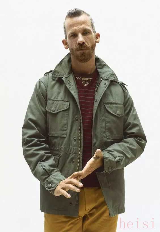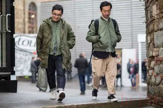 首選軍綠和黑色的款,無論是襯衫還是外套,軍裝的 M65 是最常見的款之一,經(jīng)典的四袋和工裝褲的百搭性妥妥的,下身搭配工裝褲 + 靴子、休閑褲 + Converse、Vans 或者球鞋都很友好。