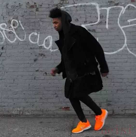 1. "標志性的反穿(Inside Out):" 這是最核心的“酷”點。將衣服完全反穿,尤其是像連帽衫、衛(wèi)衣這種通常正穿的衣服,是一種大膽而前衛(wèi)的表達。這種做法打破了常規(guī),視覺上產(chǎn)生了一種不羈、隨性甚至有點“戲謔”的感覺,瞬間提升了時尚感,也成為了他獨一無二的視覺符號。