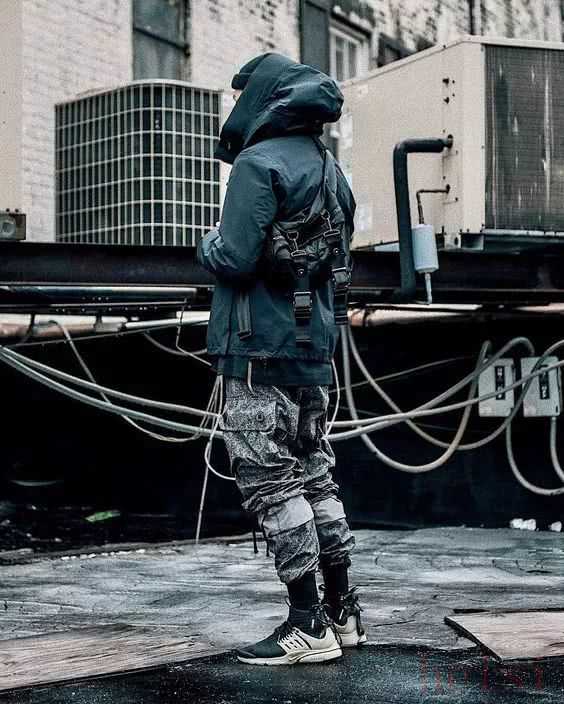 必備的單品有沖鋒衣和多袋褲,現(xiàn)在的機能道袍和戰(zhàn)術腰帶也是人氣款。有時候還不嫌多,配合自帶口袋的背包、胸包小包和馬甲這些單品就玩得更徹底。都市機能潮人就是你,當然配上機能風的球鞋效果更佳!