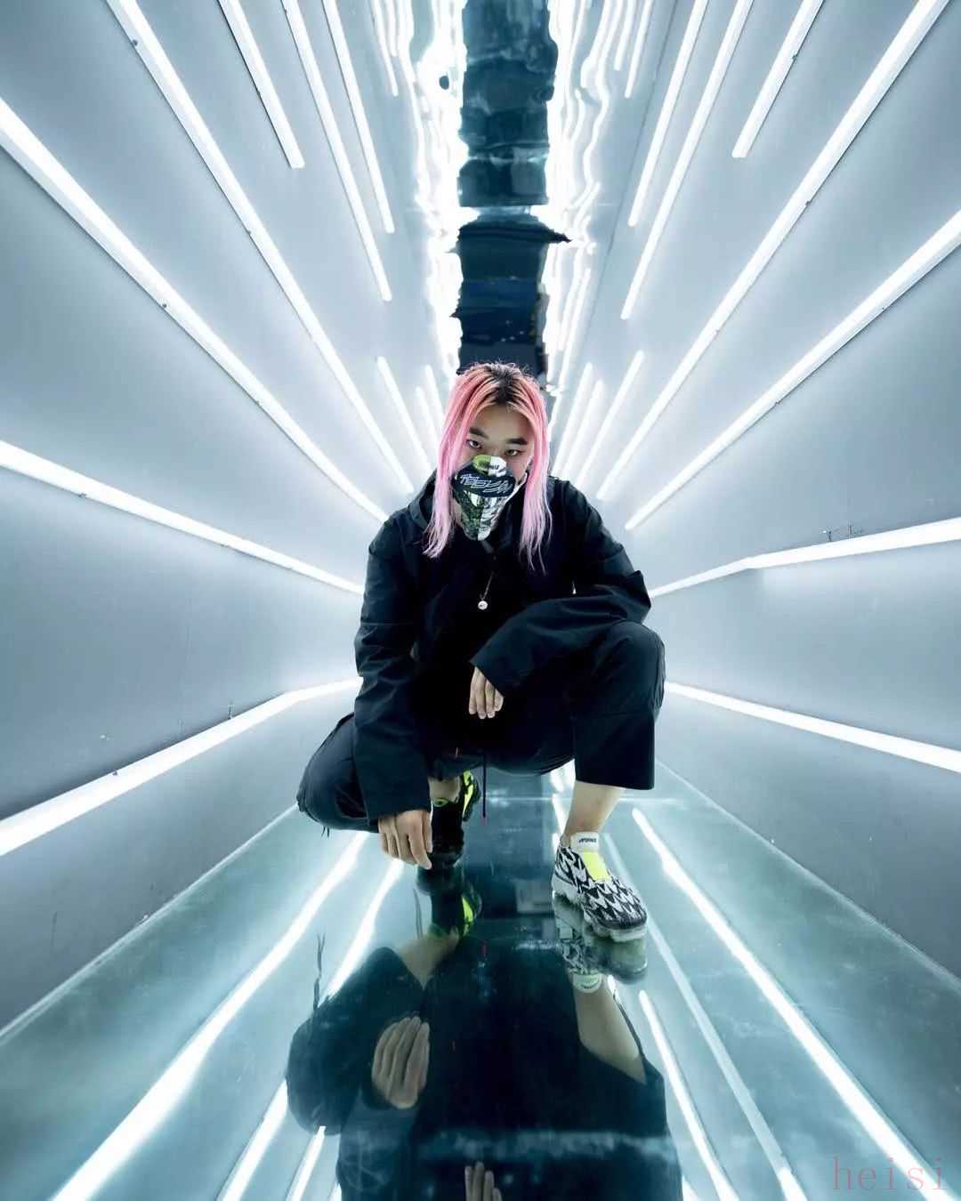 全黑是最常規(guī)的搭配玩法,如果想做最吸睛的潮流機能人,加入熒光、粉紅、或者其他亮色增加強烈對比的視覺撞色感。