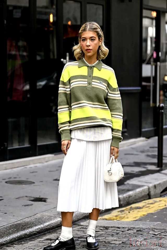 亮彩色的復(fù)古Polo領(lǐng)最減齡,特別是條紋款式。