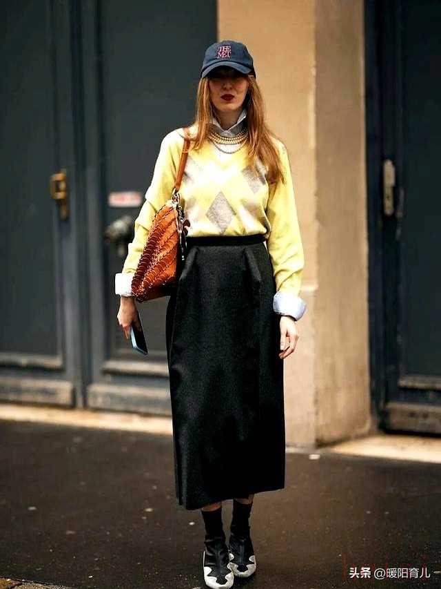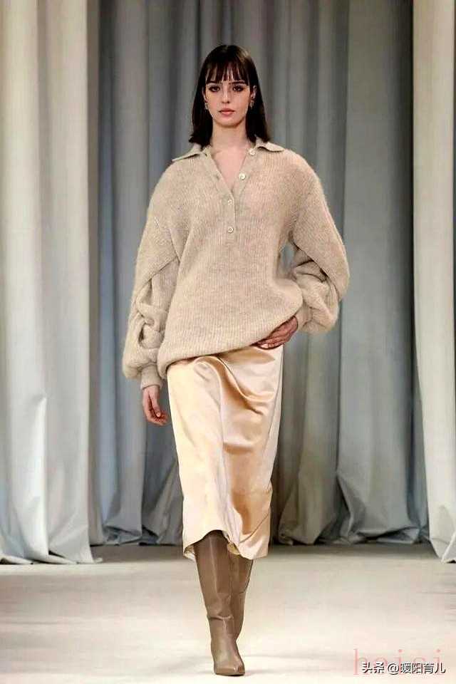 全身同色系搭配最高級(jí),比如棕色毛衣配棕色裙子,整體和諧又顯氣質(zhì)。