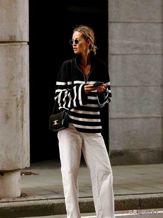 黑白條紋款最經(jīng)典,不管搭配闊腿褲還是緊身褲都好看。