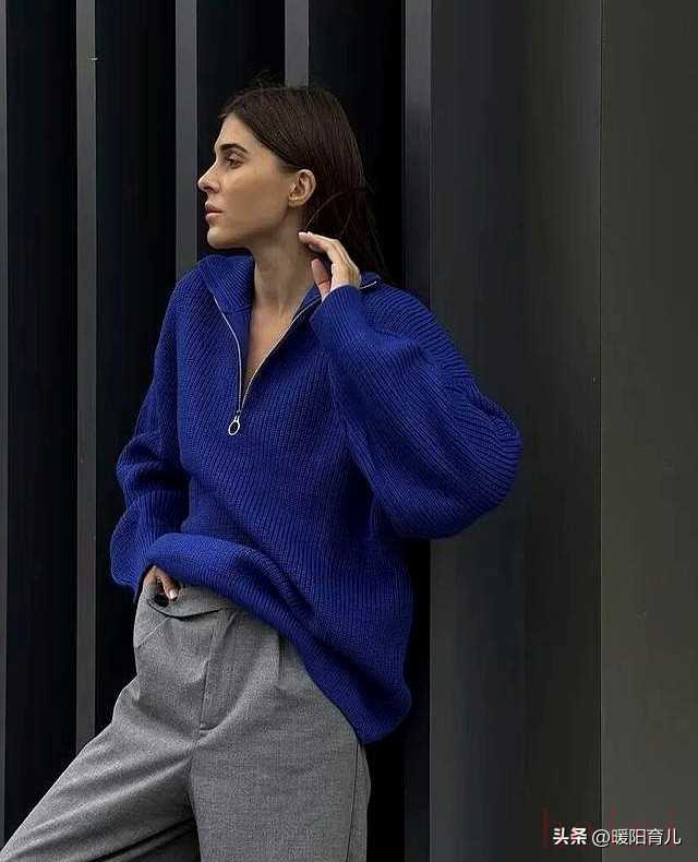 半拉鏈設(shè)計(jì)的翻領(lǐng)毛衣今年特別火。