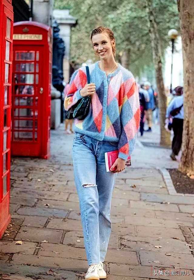 記得選毛衣的時(shí)候,菱格紋不要太密集,否則會(huì)顯得臃腫。