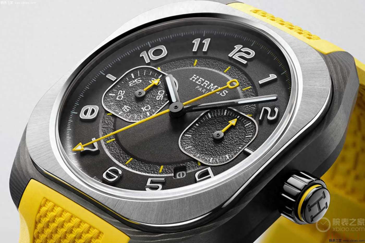愛馬仕H08計時碼表“那不勒斯黃”版隨附黃色橡膠標帶,由品牌精品店獨家發(fā)售,標價12,800美元,折合人民幣約91,000元。(圖/文 腕表之家 許朝陽)