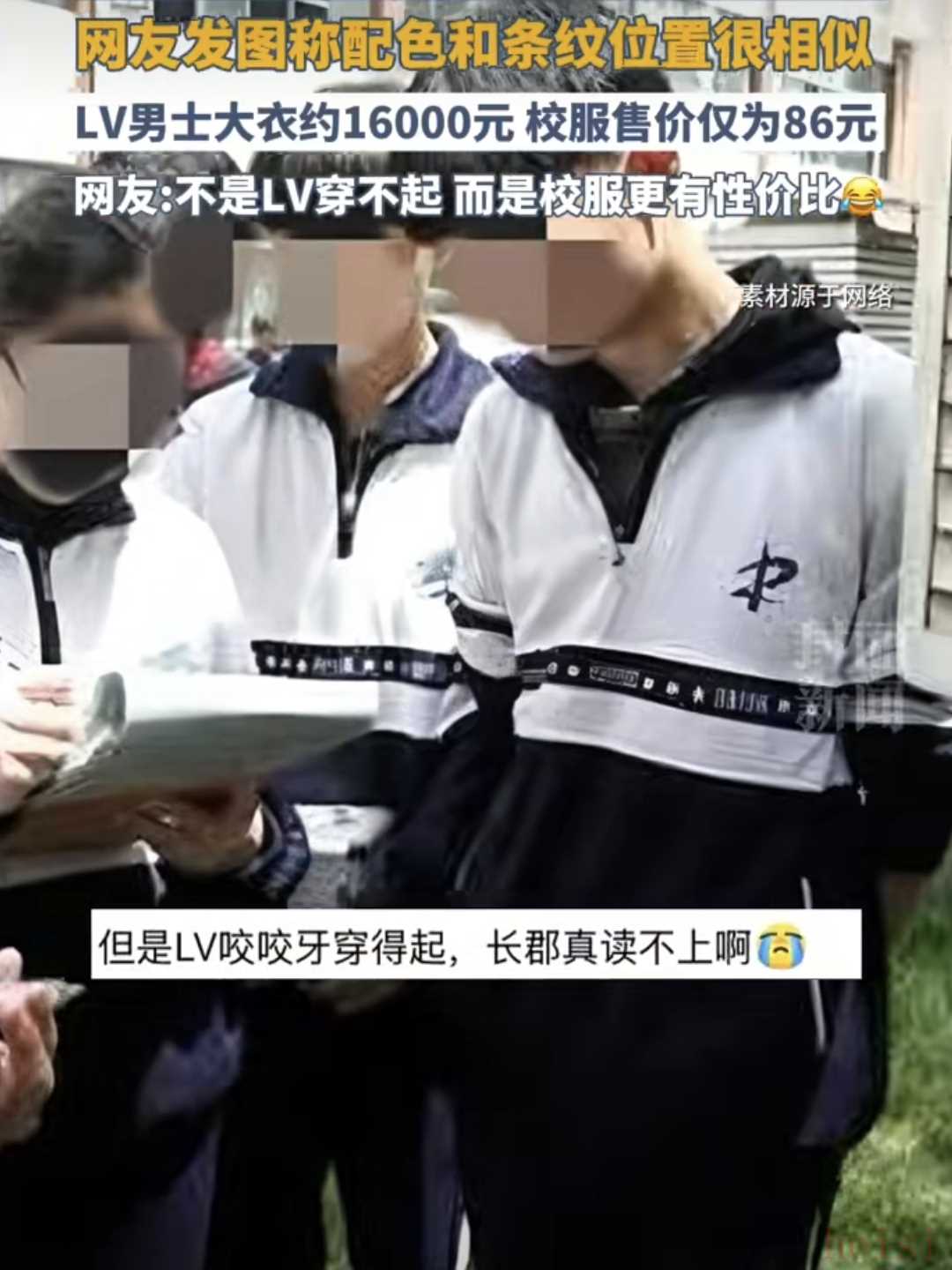 背景資料顯示,LV(路易威登)作為法國奢侈品牌,歷史悠久,以高端設(shè)計和高價位著稱,其產(chǎn)品常被視為身份象征。而中學(xué)校服則注重實用性與統(tǒng)一性,價格親民,通常由學(xué)校統(tǒng)一采購,旨在保障學(xué)生日常穿著需求。近年來,時尚界與平民文化的碰撞屢見不鮮,例如此前曾有奢侈品與快時尚品牌設(shè)計雷同的案例,但此次與校服的“撞衫”尤為突出,凸顯了消費分層下的社會趣味。
