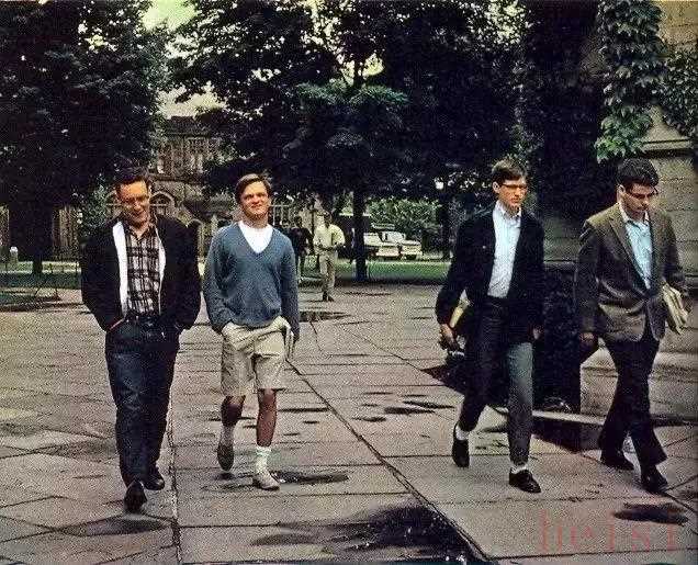這些在今天看來很正式的裝扮,在當時社會風氣更保守的年代,卻是那些恃才自傲且敢于打破陳規(guī)的高材生們表達反叛態(tài)度的工具(例如西褲配球鞋),堪稱上個世紀60年代的高富帥穿衣指南。