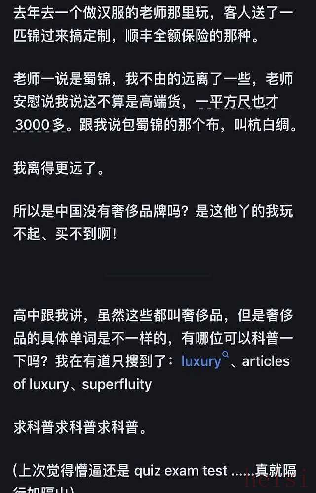 關(guān)于“中國為什么連一個自創(chuàng)的奢侈品牌都沒有”這個問題,確實(shí)引起了廣泛的討論和關(guān)注。網(wǎng)友們的觀點(diǎn)也很多元,有認(rèn)為“有”,也有分析原因的。以下是一些常見的觀點(diǎn)和解釋:
