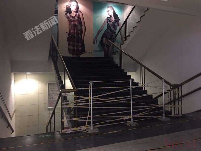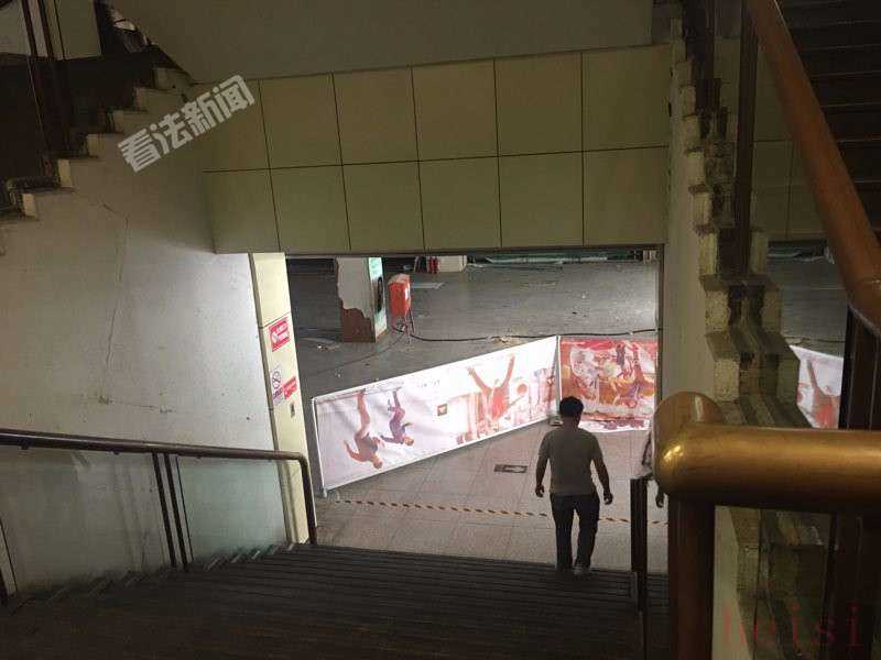 而消費者想要進入屈臣氏需要從大廈南門進入,并向保安通報。而法制晚報·看法新聞記者進入貴友大廈二樓的屈臣氏,大廈一層可見面積均被搬空,照明也已經(jīng)關閉。這家位于二樓樓梯口的商鋪,面臨大廈內(nèi)部的一端已經(jīng)落下柵欄門。大廈通往三層的樓梯,已經(jīng)被隔離帶層層包裹,禁止通行。而大廈二樓其他位置也被防水布遮擋。記者透過防水布看到,里面天花板出現(xiàn)很多洞眼,部分電線外露,地面并未動工,電梯已經(jīng)被建材遮住,內(nèi)部光源都是臨時拉設的。
