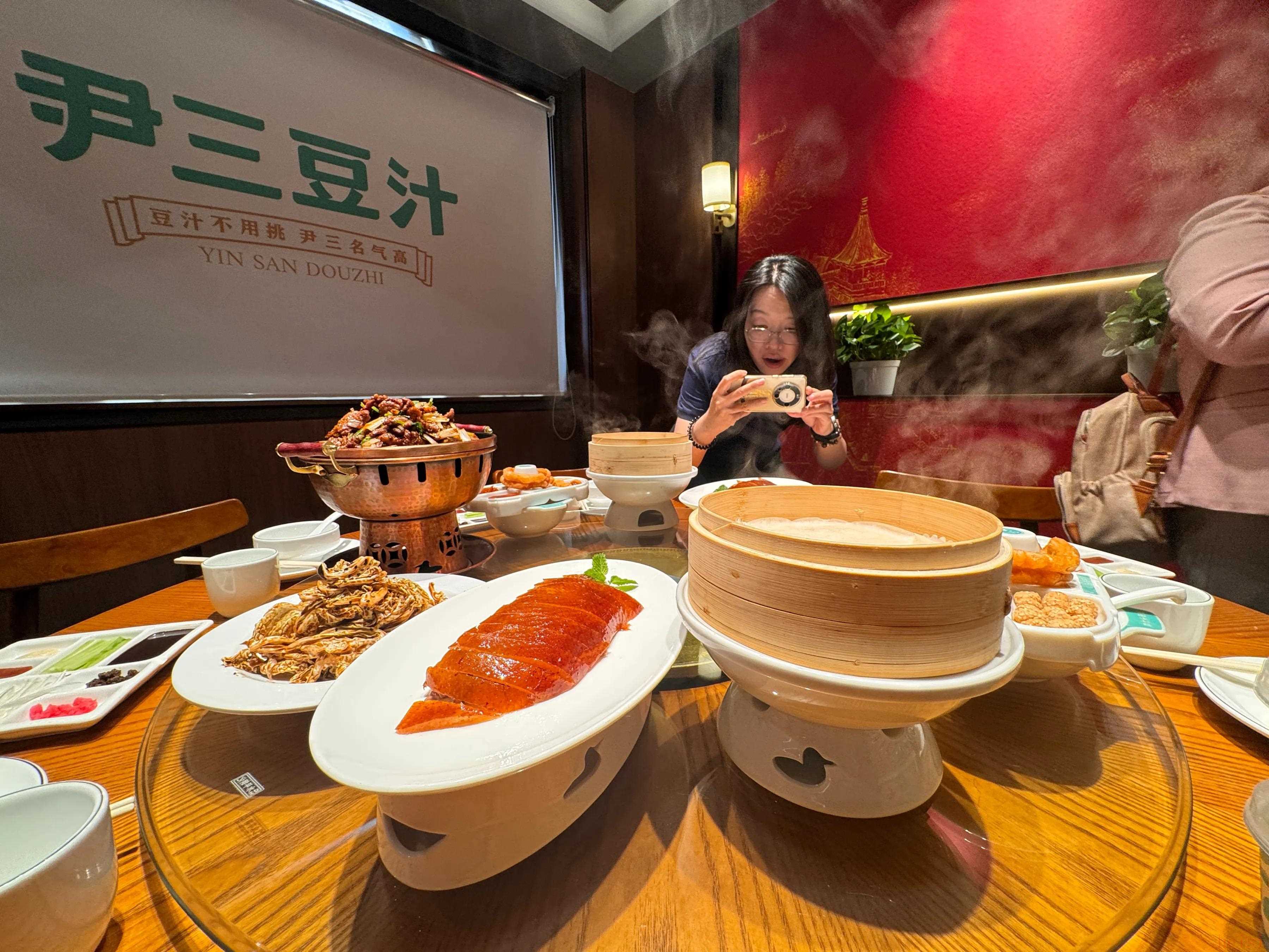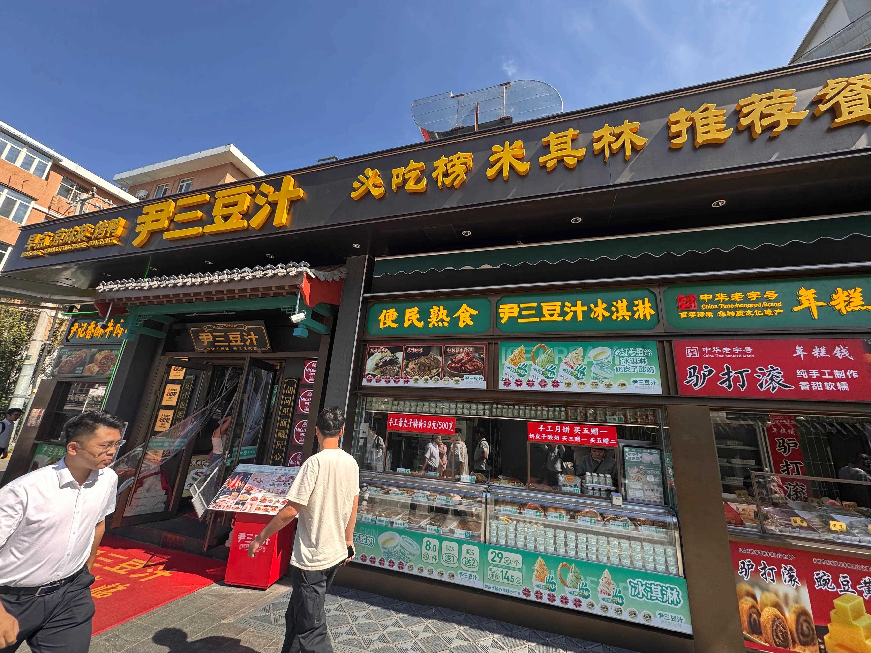 獨立層西北角的尹三豆汁貴友大廈店,入駐僅兩月便穩(wěn)居人氣榜,作為米其林與必吃榜雙料榮譽得主,它不僅帶來3元一碗、價格數(shù)十年不變的傳統(tǒng)豆汁,更將老北京煙火搬進商場:“豆汁五小?!碧撞停娌?、麻豆腐、炸灌腸、爆肚齊聚;手工奶皮子酸奶醇厚絲滑,創(chuàng)意豆汁冰激凌造型吸睛,小瓶裝豆汁還能打包帶走,讓京味隨時相伴。