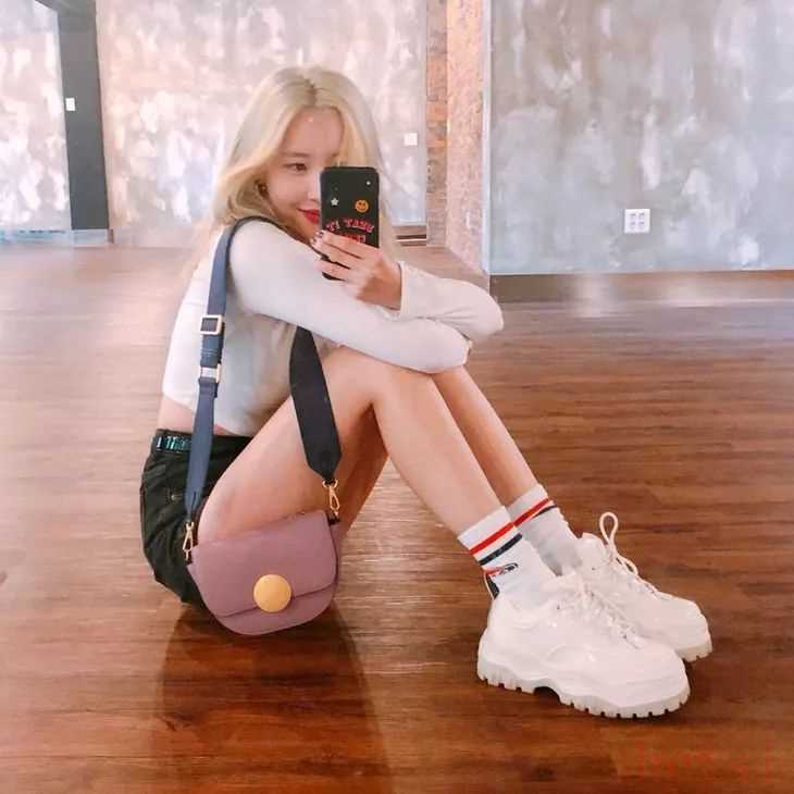 宣美真的是厚底鞋的忠實(shí)粉絲??!個(gè)人感覺厚底鞋還是很挑人的,不僅要腿細(xì),還得個(gè)子高,不然上腳比例會(huì)很奇怪。