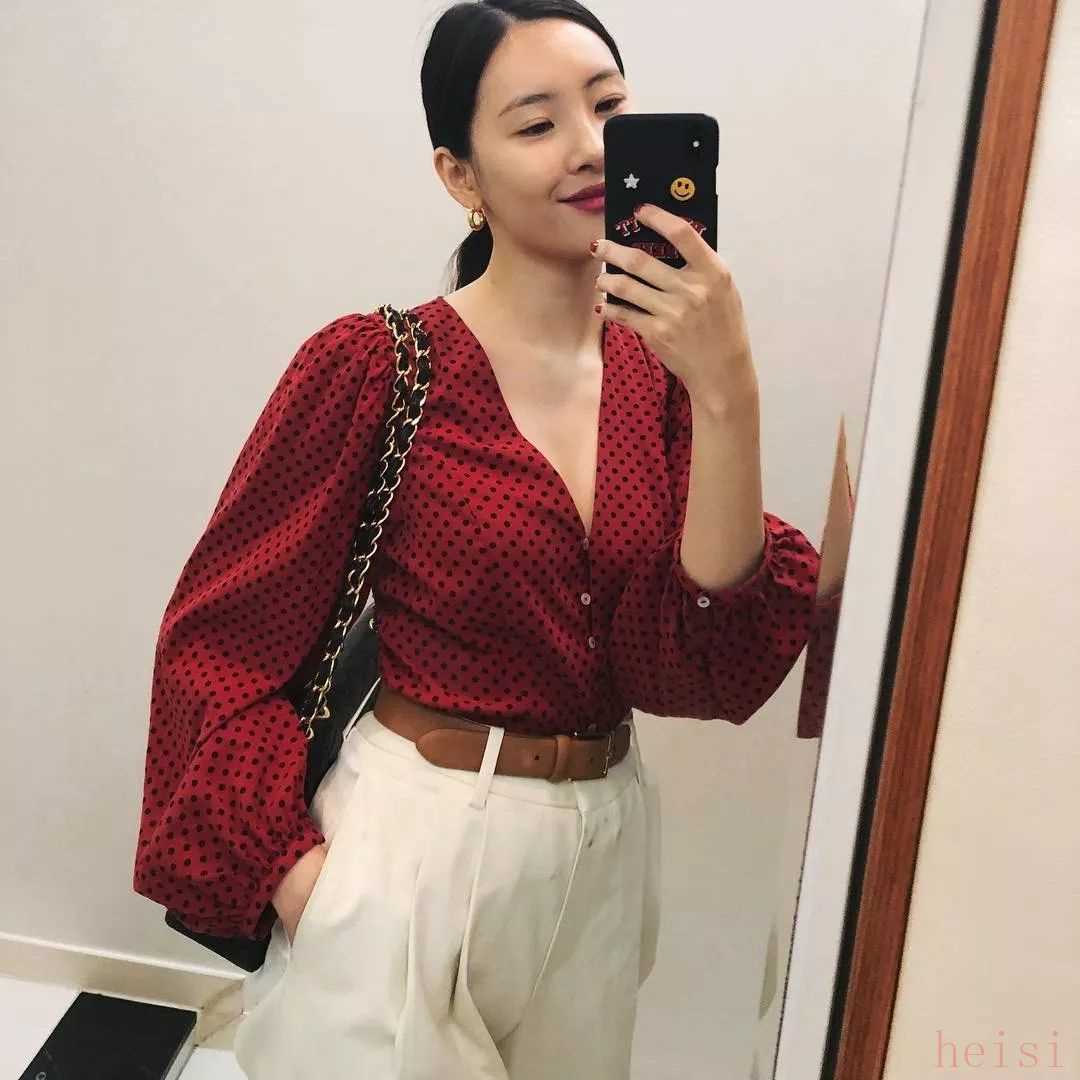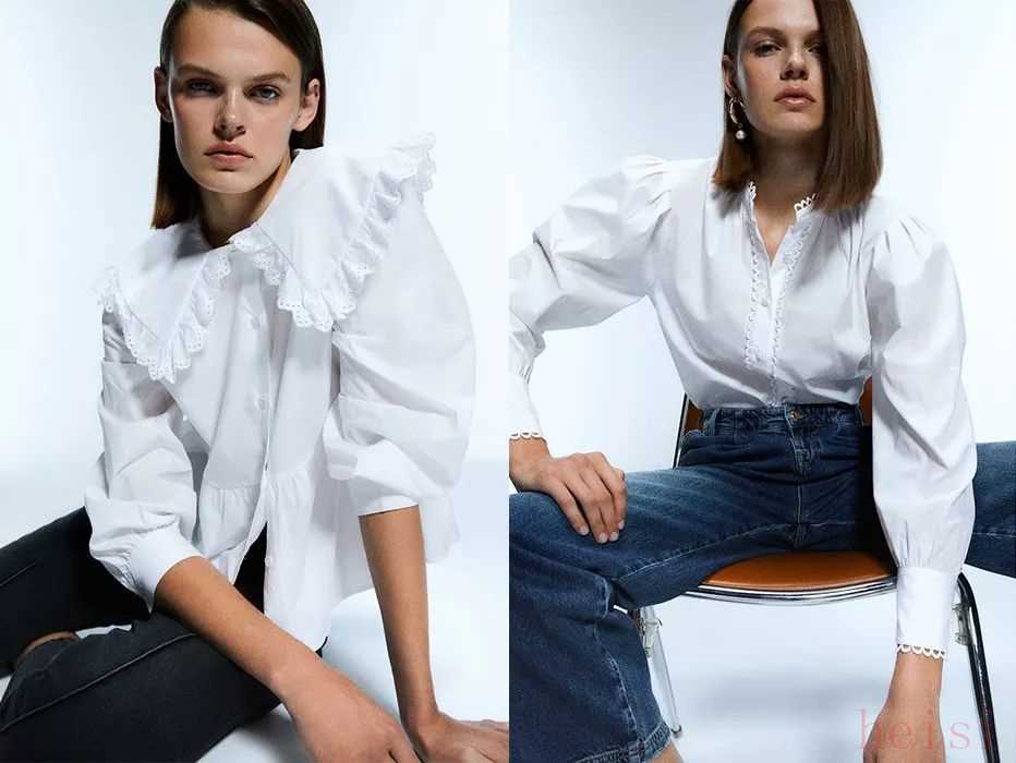 宣美對(duì)Zara的喜歡尤其以襯衫居多。延續(xù)夏天的復(fù)古路線,泡泡袖、波點(diǎn)還有乖巧的奶奶領(lǐng)襯衫成為宣美的最愛。
