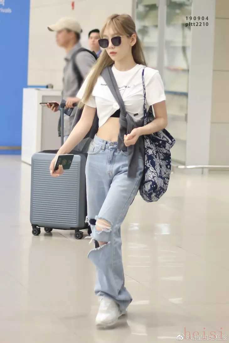 從布拉格回來,金泰妍選擇了一套T恤配仔褲的輕松造型。T恤上做了露腰的心機(jī)處理,增強(qiáng)性感指數(shù)。