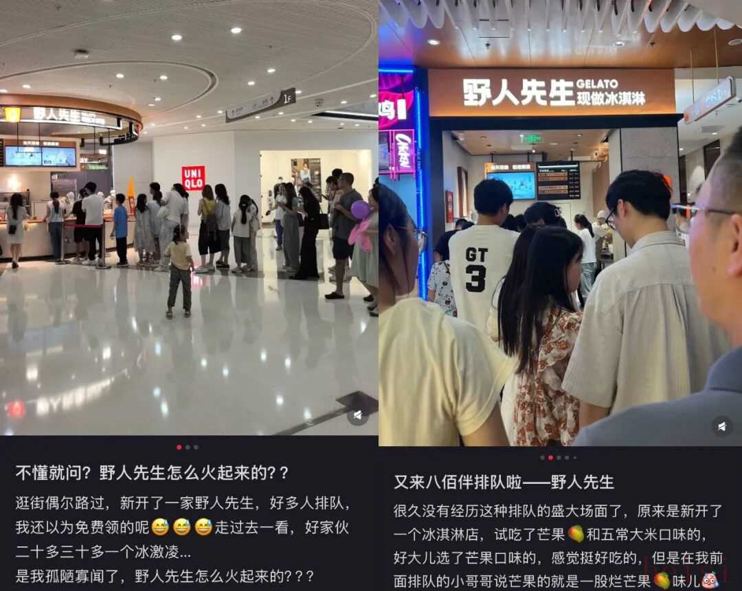 這或許便解釋了,為何野人先生門店前總有這么多人。一位小紅書網(wǎng)友曾表示,多數(shù)人不是在排隊點(diǎn)單,而是在等餐,“即便不用排隊,從點(diǎn)餐到拿吃上冰淇淋也要等40分鐘”。