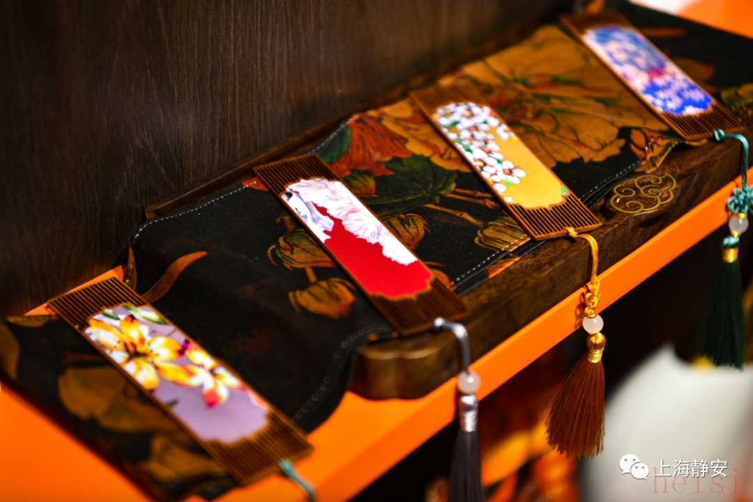 這是開開近年來伴手禮經(jīng)典元素香云紗系列的衍生禮品。一套四款書簽,采用復(fù)古的酸枝木紋理,鑲嵌香云紗圖案,同時運用3D立體浮雕打印工藝,正反雙面造型各異,是一套體現(xiàn)海派文化的實用與收藏兼得的佳品。