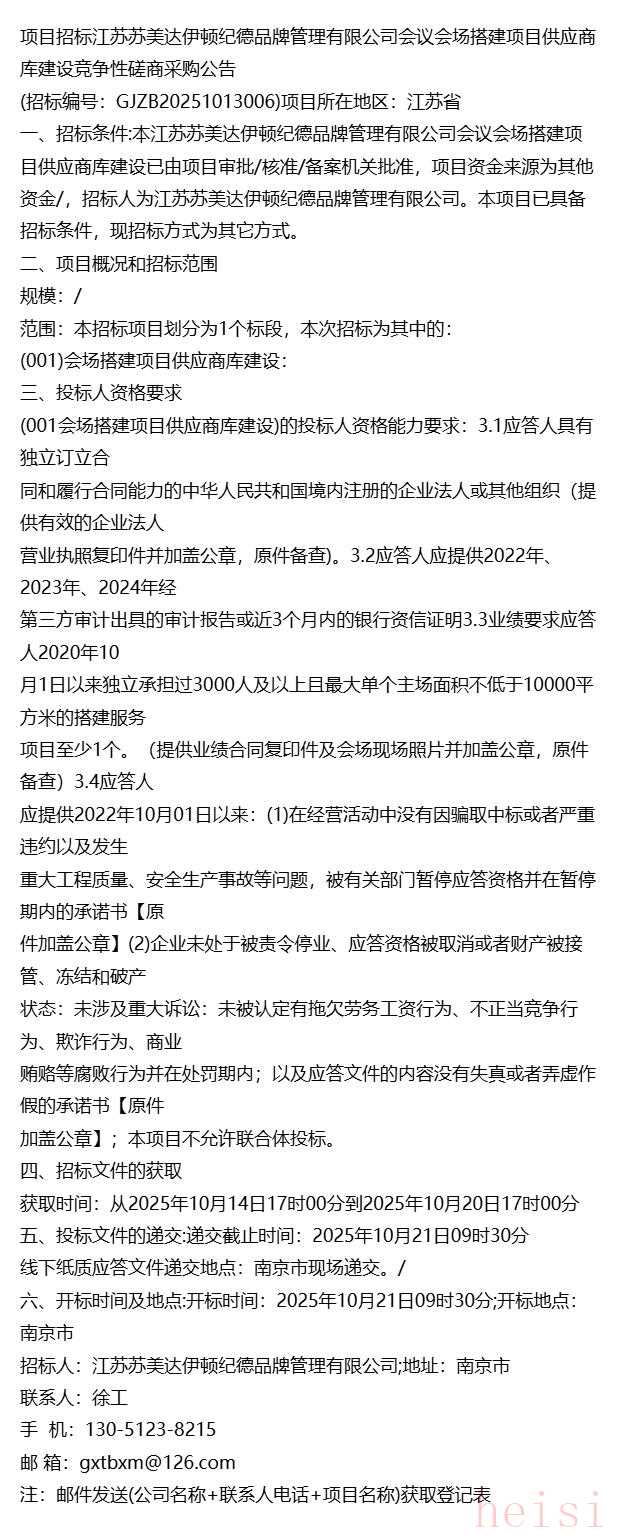 項(xiàng)目招標(biāo)江蘇蘇美達(dá)伊頓紀(jì)德品牌管理有限公司會(huì)議會(huì)場(chǎng)搭建項(xiàng)目供應(yīng)商庫建設(shè)競(jìng)爭(zhēng)性磋商采購公告
