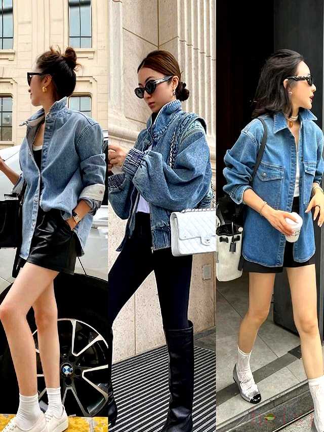 1. "深藍牛仔外套 + 牛仔短褲 = 休閑基礎,奠定活力基調"