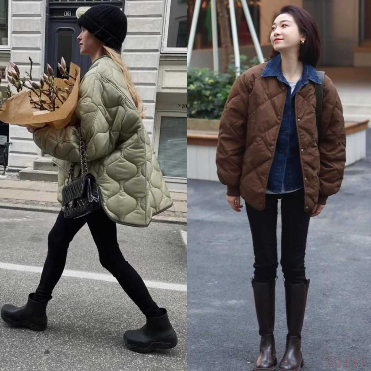 絎縫棉服通過菱格、波浪或各種現(xiàn)代幾何的絎縫線跡,將填充物均勻固定,保暖但不顯臃腫。切記盡量不要選擇絎縫太小太密集的款式,容易顯得土氣。