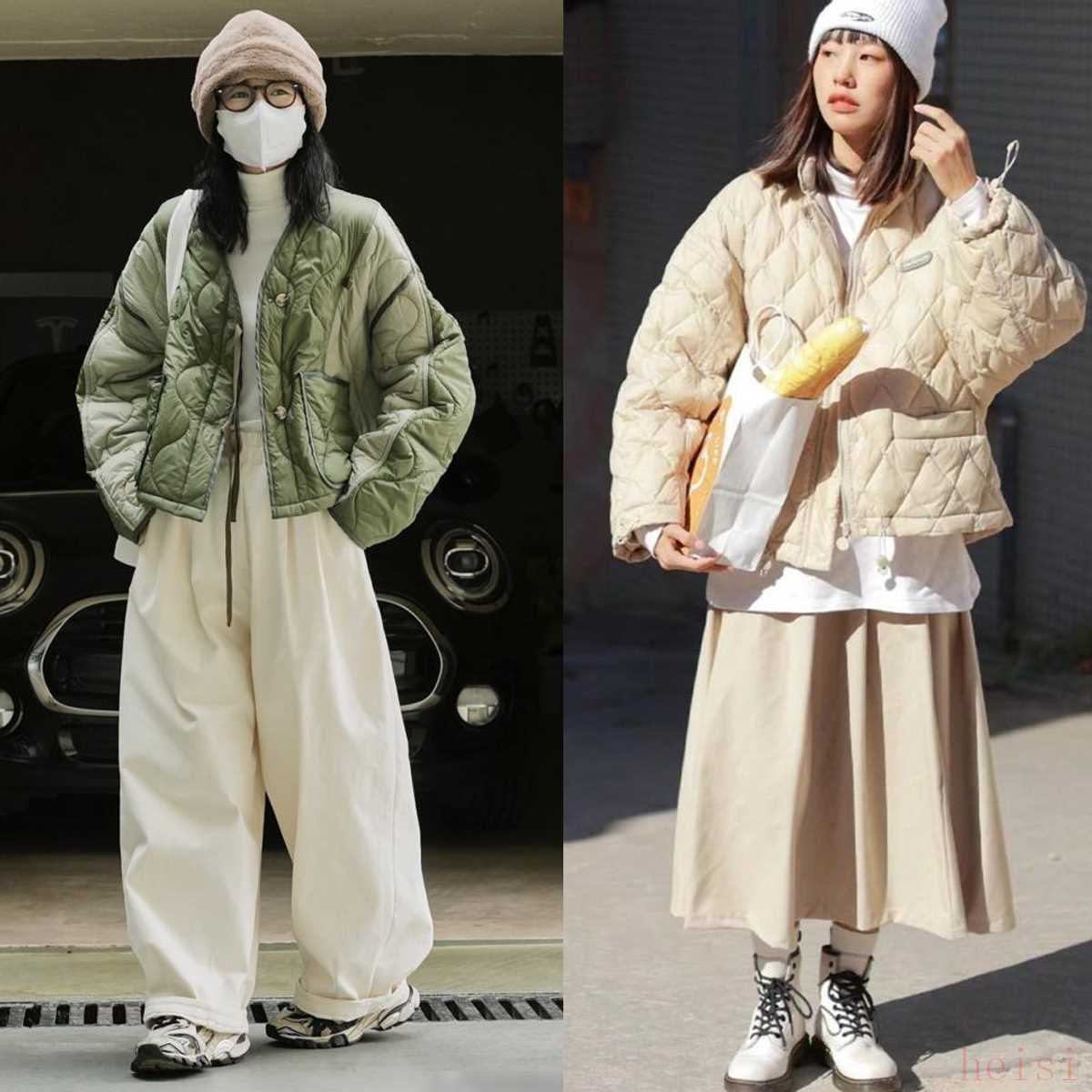"時髦高級點:" 相較于笨重的羽絨服,輕薄羽絨服通常采用更高科技的面料(如拒水、防風(fēng)、透氣),設(shè)計更簡潔現(xiàn)代,廓形更貼合身形。顏色選擇多樣,從經(jīng)典黑白灰到亮色、格紋等,都能輕松搭配,打造出既有保暖性又不失輕巧時髦的造型。無論是飛行員款、H型還是連帽款,都有多種選擇。