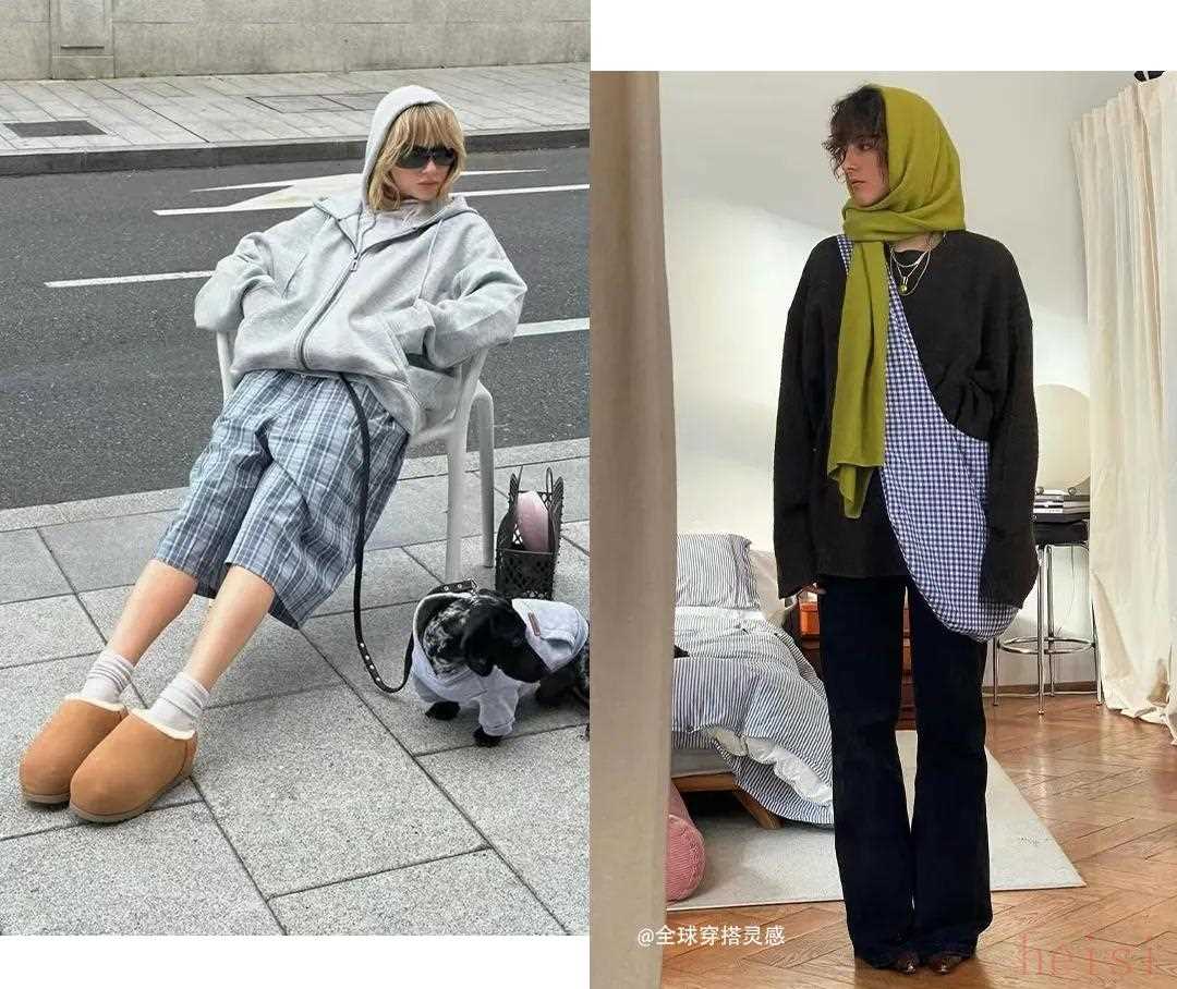 格紋和外套的結(jié)合更加落地實(shí)穿性u(píng)p up↑