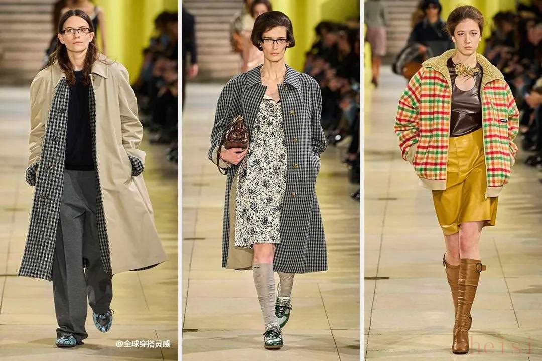 例如Miumiu25秋冬秀場(chǎng)的設(shè)計(jì)回到50年代,簡(jiǎn)繁有質(zhì)把格紋外套詮釋得很有經(jīng)濟(jì)上行的美