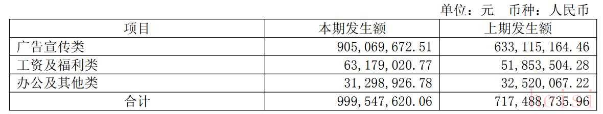 由于“線上流量成本持續(xù)高漲、公司持續(xù)品牌建設(shè)和科學(xué)傳播投入”等,今年上半年,丸美生物的銷售費用同比增長39.31%至10億元,銷售費用率高達56.5%。進一步來看,在銷售費用中,用于廣告宣傳的費用約9.05億元,上年同期這筆費用為6.33億元,同比增長了42.97%。