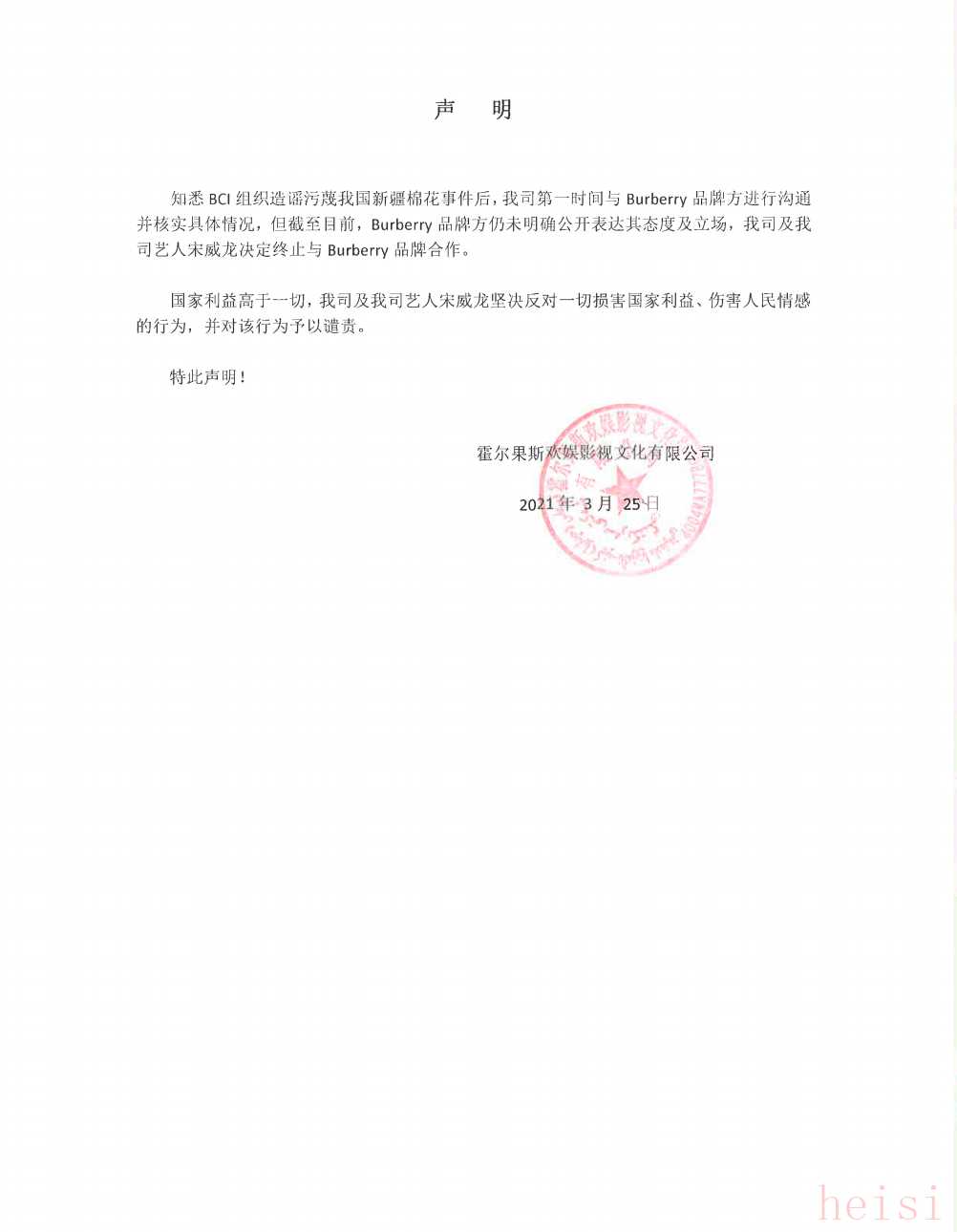 歡娛影視25日晚間也發(fā)布聲明稱,截至目前,Burberry品牌方仍未明確公開表達其態(tài)度及立場,我司及我司藝人宋威龍決定終止與Burberry品牌合作。