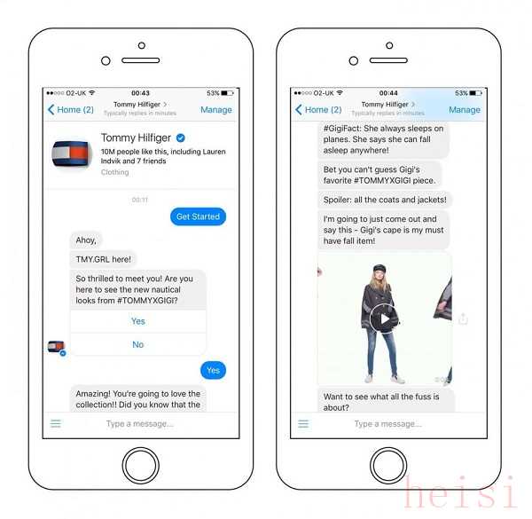 除此之外,Tommy Hilfiger還致力于通過3D圖像識(shí)別、人工智能等科技手段進(jìn)一步提高用戶體驗(yàn)。比如,品牌率先推出了Facebook Massenger平臺(tái)上的AI程序TMY.GRL用于智能應(yīng)答。Baker稱“人們幾乎都會(huì)花5分鐘與智能機(jī)器人溝通,我們獲得了87%的回復(fù)率?!?/p>