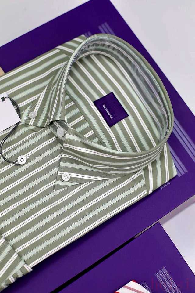 4. "手工條紋":“手工”是關(guān)鍵。這表明條紋并非簡(jiǎn)單機(jī)器印制,而是通過更傳統(tǒng)、更耗費(fèi)工時(shí)的工藝(可能是手繪或特殊印花技術(shù))制作而成。這不僅增加了襯衫的藝術(shù)感,也提升了其價(jià)值。手工制作的條紋在視覺上可能更有細(xì)節(jié)和質(zhì)感。
