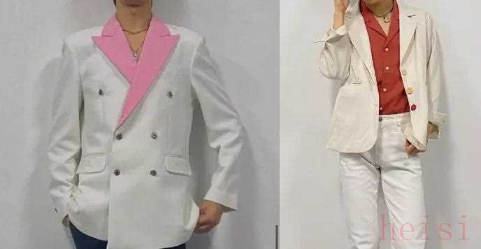 看這服裝,粉色翻領(lǐng)反光西裝,釘著彩虹紐扣的米白西裝,確實有夠丑的。