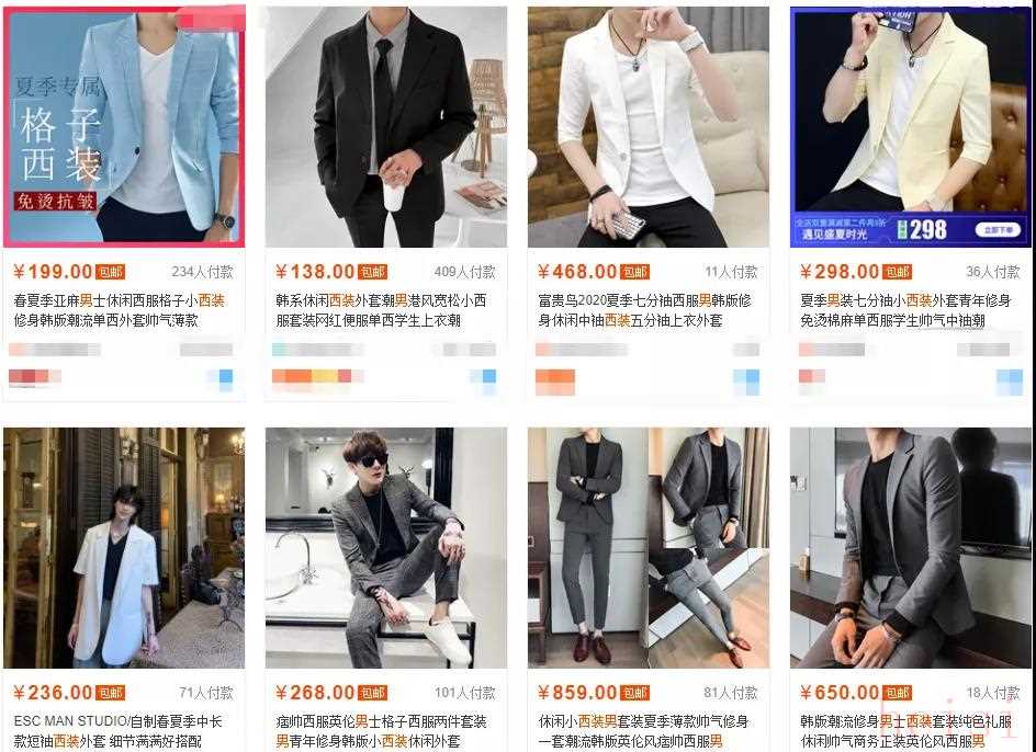 某電商品牌上充斥著韓版、日系風(fēng)格的西服。