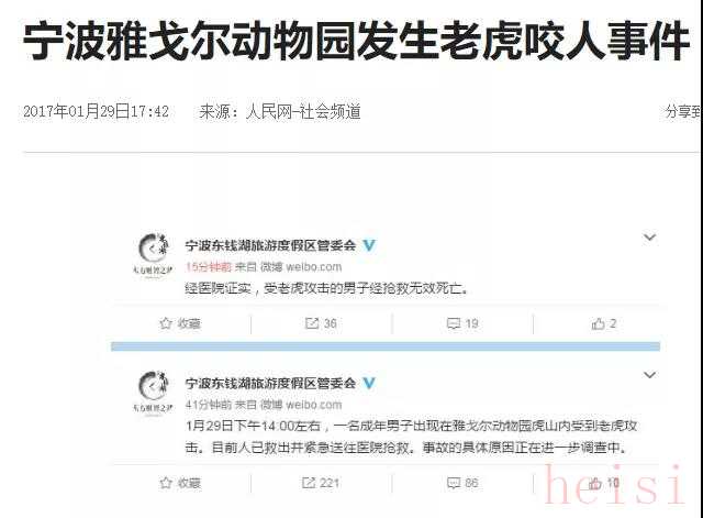 2017年1月29日,雅戈爾動物園發(fā)生老虎咬人事件,被咬男子死亡。