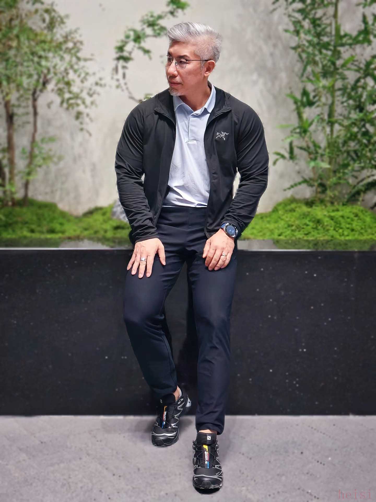 中年男人在穿中產(chǎn)運(yùn)動(dòng)鞋時(shí),可以嘗試搭配不同風(fēng)格的服裝,如休閑外套配西褲,將正式與戶(hù)外單品完美結(jié)合在一起,沉穩(wěn)之余又盡顯時(shí)髦。