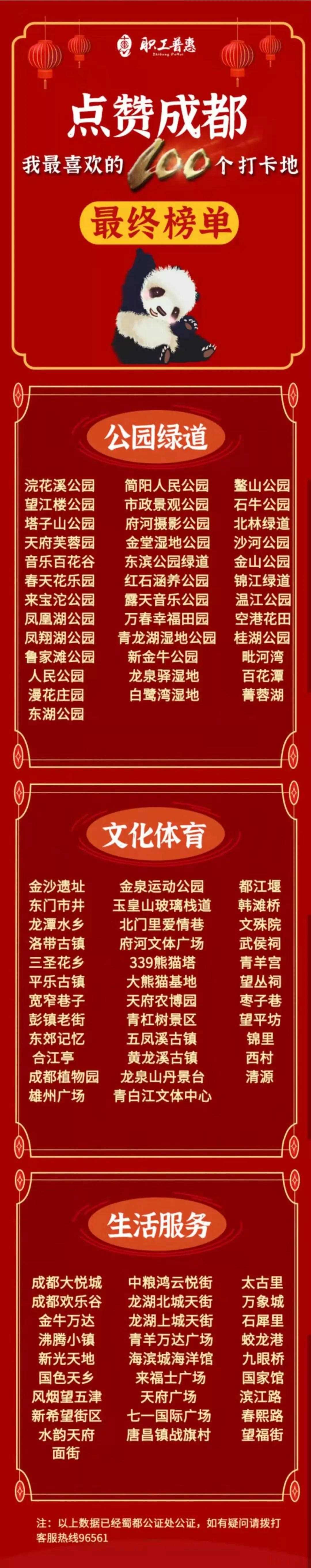 活動(dòng)前情提要成都市總工會(huì)“點(diǎn)贊成都· 我最喜歡的 100 個(gè)打卡地”活動(dòng)自2月10日開展以來(lái),廣大群眾積極參與,廣泛宣傳成都地標(biāo)建筑、文化景觀、時(shí)尚街區(qū)、公園綠道、品質(zhì)社區(qū)等網(wǎng)紅打卡地,展現(xiàn)新時(shí)代各具特色的成都建設(shè)之美和發(fā)展之美,讓廣大群眾感受成都“十三五”取得的輝煌成績(jī),紛紛為成都點(diǎn)贊。日前最終榜單正式揭曉,金牛12個(gè)打卡地名列其中!